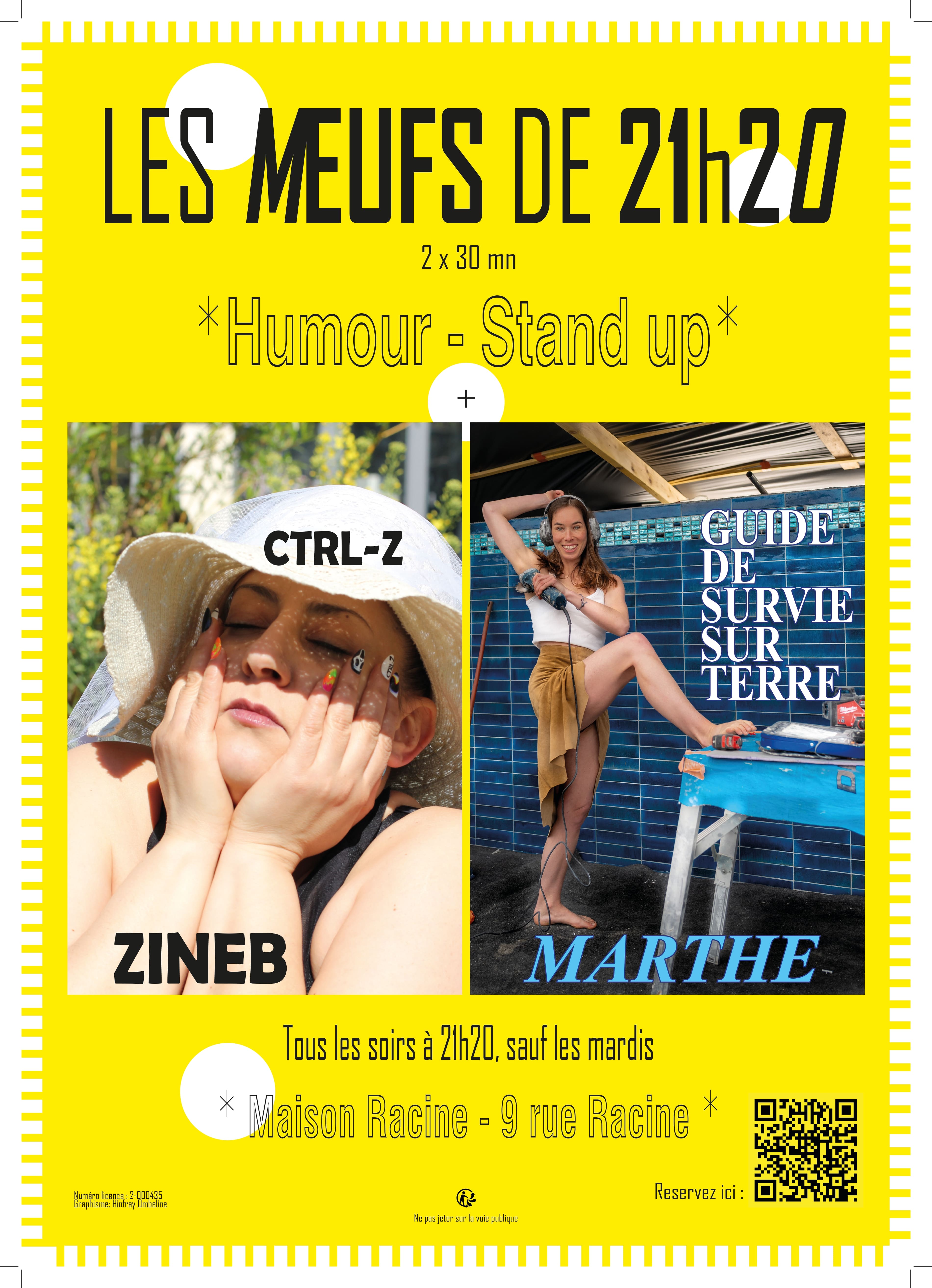 Je joue dans le cadre du co-plateau **“Les Meufs de 21h20”**, un **2x30 minutes de stand-up** avec Zineb, qui présente son spectacle “Ctrl-Z”.