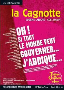 Le Théâtre d'Ivry Antoine-Vitez, situé dans le cur populaire de cette ville de la banlieue sud, draine un flux quotidien de centaines de spectateurs en ses artères tous les soirs, pour venir assister à La Cagnotte de Labiche, mise en scène par Adel Hakim.Cette somptueuse comédie en cinq actes fut présentée au Théâtre du Palais-Royal le 22 février 1864. Cette année-là, les auteurs de théâtre ne sont plus dans l'obligation de dimensionner leurs uvres en fonction d'une prestation musicale. Il s'agit de la fameuse loi sur la libéralisation des théâtres.Labiche raconte de façon très anecdotique le quotidien de plusieurs amis de la Ferte-sous-Jouarre qui se réunissent régulièrement pour s'adonner à quelques parties de bouillotte, un dérivé de poker. L'argent est de mise et chacun de verser quelques pièces aussitôt remisées dans une cagnotte.Entre pièces et boutons de culottes, les protagonistes s'essaient à la tricherie de petite main à qui donnera le moins pour gagner l'estime de l'autre. Invectives et mauvaise foi restent au fond de la poche car ce n'est pas ainsi que la cagnotte va se remplir.Pourtant, il est grand temps de casser la tirelire et de faire fructifier le gain accumulé selon les envies et saucissonades extravagantes des personnages. Un vote est organisé pour déterminer, in fine, qui choisira d'aller à la foire de Crépy, d'acheter une dinde truffée ou encore d'aller à Paris. A la majorité, la capitale obtient la faveur du suffrage.Le ton est donné, Adel Hakim infuse son savoir-faire dans une ingénieuse et virevoltante mise en scène, laquelle, deux heures durant, enthousiasme le public entre rires, pitreries et quiproquos. La modularité du décor s'immisce admirablement dans ce ballet où les comédiens n'ont de cesse de vivre la pièce contextuellement interprétée en occupant le vaste plateau offert pour ce genre de théâtre.Deux énormes lampes, au style rococo posées de part et d'autre de la scène, illuminent la salle d'un restaurant recommandé de vive voix par un ami de Champbourcy. Les amis attablés, la carte des menus en main, les yeux perplexes défilent sur l'appellation des plats, ils s'offusquent quant aux tarifs prohibitifs. Le serveur de les recommander de certains bons petits plats à la portée de toutes les bourses... pas provinciales.Chacun apprécie la qualité des mets servis, la tablée ploie sous la bonne humeur, le p'tit rouge aidant les esprits à se délier jusqu'au moment où l'addition, délicatement jointe dans un livret, rend furibond Champbourcy. Tollé populaire autour de la table, les amis refusent, à l'unanimité, de régler le solde. Le départ inopiné du restaurant, couvert sous un halo d'invectives, ne les conduit-il pas directement aux mains des policiers, lesquels manu militari les amènent illico presto au commissariat. La province profonde ressurgit confrontée à une situation inattendue. On se rassure mutuellement, on se dit qu'il s'agit d'une erreur judiciaire, on va être relâché assez vite. Malheureusement, le destin escompté ne se révèle pas celui optimisé à coups de paroles fédérées.De la chaise sise devant le bureau du commissaire-adjoint, le banc des accusés les attend et les barreaux de la garde-à-vue pour tout horizon. Heureusement, Colladan a conservé sa pioche. Commence, dès lors, un long labeur pour intenter une évasion.Les amis codétenus jouent la complicité, entonnant à tue-tête le refrain d'une chanson solognote, pour dissimuler les coups de pioche. Tintamarres et cacophonie s'emparent de la scène, jusqu'au moment où le notaire, perdu depuis l'arrivée à Paris le matin même, vient déposer plainte pour le vol de sa montre.L'état d'esprit de Labiche caricaturant la naïveté et l'exagérée fragilité des petite gens de province est traitée avec finesse et désinvolture dans la mise en scène d'Adel Hakim. Un vaudeville mené tambour battant par cette joyeuse horde de comédiens, un rythme endiablé emblavé au cordon dans l'expression textuelle, de bien jolies répliques parodiées en joutes verbales à soulever des torrents de rires dans la salle ; une gestuelle constante qui donne à la pièce une agréable sensation de fraîcheur et de tonicité ; les costumes un tantinet kitch et les postiches à faire rougir tontons et cousins de Navarre ; le décor déménage et emménage à la vitesse d'une piste de cirque où alternent clowns, trapézistes et félins, grandiose ; chants et musiques se marient allègrement au gré de la ponctuation en virgule apposée entre chaque scène et situations sciemment considérées.Les comédiens, dans leur intégralité, excellent dans les rôles respectifs qui leur sont prêtés de jouer. Adel Hakim offre avec La Cagnotte, un vaudeville de très belle facture, la définition du burlesque décliné en opéra-bouffe. Un très grand moment théâtral. D'ajouter que le personnel du Théâtre d'Ivry Antoine-Vitez assure un accueil des plus convivial. La cerise, la sincérité dans le sourire et le bonheur de recevoir le public, une mise en salle vraiment très plaisante.