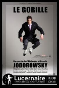 La salle du Lucernaire accueille gaiement sa petite société de spectateurs en conversation jusqu’a ce qu’il faille éteindre le portable puisque le "spectacle va commencer". Aussitôt fait, Boris Jodowrosky débarque, gorille lové dans un costume trois pièces, et salue le public avec une solennelle politesse. Par sa gestuelle mi simiesque/mi socialisée, il nous souffle immédiatement que ce "spectacle" avait commencé bien avant que la lumière ne s’éteigne ; par sa simple évocation de notre condition animale, il nous rappelle combien nous sommes tous des acteurs bien dressés.Ce premier malaise insufflé, le gorille peut commencer d’exposer son projet : c'est le passage de l’animalité pure à l’humanité maîtrisée qu'il va nous conter. Didactique au poil, il procède méthodologiquement. D'abord, il revêtit avec brio les habitus corporels d’un singe sauvage, puis c'est le malaise gestuel d’un animal que l’on cherche à domestiquer, la maladroite résignation d’une bête qui accepte d'être dressée, la timide évolution d’un personnage de foire se produisant dans un music-hall pour éviter d’être enfermer dans une cage, l’étonnement masqué de celui qui gagne beaucoup d’admiration et d’argent sans l'avoir réclamé, la lente lassitude d’un personnage riche et mondain répugné par ce grand cirque humain... au final, l’étant d’un homme sur lequel s’écrase le poids de l’absurdité du monde social et de sa répétition. Le ton se veut humoristique mais le rire provoqué par cette création des Jodorowsky(s) grince des dents.L’absurde étouffe rapidement le spectateur. Boris Jodorowsky, au milieu de sa narrative performance physique, va jusqu’à lui rappeler dans un cri que tous ces codes, ces dogmes, ces institutions humaines n’ont "AUCUN SENS !" et que tout ce qu’il désire, lui, c’est "retourner [à la vie animale]". La figure simiesque nous invitant dès lors à assumer le non-sens terrestre par l'abandon du jeu social humain. Le Gorille est en ce sens un spectacle nécessaire qui rappelle au désordre de la pensée formatée.Cependant Jodorowsky esthétise son spectacle avec un tas d’artifices (musiques, lumières, acrobaties) qui, bien que sûrement volontairement surfaits en tant qu’ils soulignent la kyrielle du superficiel social, gênent l’adhésion authentique au propos. Il semble falloir gratter musique superfétatoire et les pirouettes excessives pour être envahi de manière juste par l’étreignante réflexion kafkaienne.Mais si ce spectacle oscille entre le poignant textuel et le surjoué gestuel, il a tout de même un effet précis : celui de provoquer chez le spectateur un dégoût envers ses propres codes sociaux. Après quelques battements de mains irréfléchis à l’adresse de la performance d’acteur de Jodorowski fils, nous sommes en effet plusieurs a avoir mis en pause l'applaudissement mécanique. La plus juste manière de remercier la profondeur réflexive esquissée étant surement de troquer les clap sociaux pré-programmés contre un silence troublé.