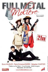 Une uvre vacillante non identifiée, voilà comment on pourrait désigner cette ovni théâtrale. Si l'on considère que le théâtre contemporain manque d'inventivité, on n'aura aucun mal à trouver son compte ici. Prendre en otage toute une salle afin d'infliger aux spectateurs une prestation pitoyable de deux acteurs affligeants, c'est faire partir sur d'excellents rails cette comédie. Mais est-ce que l'originalité suffit pour produire une uvre d'art réussie? C'est tout le débat de ce spectacle...La dramaturgie est ici d'une maladresse extrême. Les situations s'enchaînent à peu près n'importe comment et des trois personnages, aucun n'est crédible. C'est fait exprès, dira-t-on, et on aura raison de rétorquer cela : l'absurde à son plus haut degré ne cherche qu'à trucider le vraisemblable ! Certes, mais l'absurde aussi nécessite d'être façonné avec beaucoup d'art pour que le résultat final en devienne efficace.Un Argan petomane et une Toinette quelque peu excitée essaient de jouer Le Malade Imaginaire. C'est seulement quand le texte de Molière est scandé, que l'on échappe à une flopée de vulgarités et à une recherche d'effets comiques que même le service public, voire TF1, auraient difficilement cautionnés... Mais c'est fait exprès, dira-t-on sans cesse, car c'est de l'absurde...Et il est vrai que dans un tel univers de médiocrité, la violence prend tout son sens. Un coup de fusil qui en temps normal nous aurait offusqués, sonne soudainement comme un coup libérateur. C'est tout le paradoxe de ce spectacle (et, répétons-le, son originalité) : ses imperfections en font son intérêt. A défaut de faire rire (même si, avouons-le, la salle rit), cela fait réfléchir...Full Metal Molière est une curiosité dramaturgique, et on ne sait pas si on doit en rire ou en pleurer.