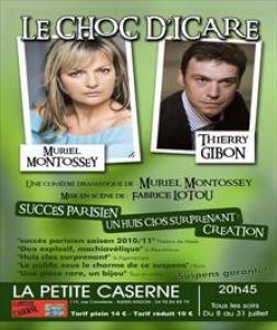 Elle est critique au Figaro, il est auteur de théâtre. Une nuit les rapproche... Mais pour Ariane, le personnage féminin, cela n'est qu'une histoire d'un soir, un plaisir partagé entre une femme de cinquante ans et Romain, un homme plus jeune. Ce dernier, lui, ne l'entend pas de cette oreille. Nous sommes le jour de la générale de sa pièce et Ariane a toutes les cartes en mains pour lui faire connaître la gloire ou la débâcle... A moins qu'entre eux, des liens plus profonds existent, à l'insu même d'Ariane, séquestrée, prise au piège d'un passé qui soudain resurgit.Le Choc d'Icare, teinté d'intrigue noire et d'humour ravageur, est un huis clos qui tiendrait en haleine le plus sceptique. Muriel Montossey, connue pour ses frasques télévisuelles dans les années 80, à l'époque où elle incarnait la coquine suave et pétulante de La Classe, revient ici de manière percutante et inattendue. Son partenaire, Thierry Gibon, excelle lui aussi dans l'art du suspense, avec un jeu à la fois sombre et jubilatoire, sur une mise en scène subtile de Fabrice Lotou.Le script, écrit par Muriel Montossey elle-même, questionne et surprend. Il faut dire ce qu'il contient de douleurs, de drames mais aussi d'envie de vivre, de dépasser les conventions sociales. Un moment de grande intensité.