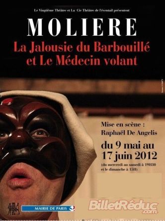 La Jalousie du Barbouillé et Le Médecin volant sont deux petites comédies de moins d’une heure chacune, écrites par Molière au début de son uvre littéraire. Elles sont déjà empruntes de toute la poésie, de l’humour, des personnages et de certains sujets chers au grand homme de lettres. Dans la première, un vieux mari cocu tente de faire payer à sa jeune femme qu’il délaisse, son infidélité. Dans la suivante, Sganarelle, le rusé valet, doit feindre d’être un grand médecin pour tromper un père qui veut marier sa jeune fille à un riche et vieux monsieur, alors que cette dernière est amoureuse d’un charmant jeune homme riche et de bonne éducation. De la farce, des situations cocasses, des personnages granguignolesques, et des thèmes sérieux traités sous le joug de la comédie. Tous les éléments dont raffole Molière et qui ont fait son succès.La cie du Théâtre de l’Eventail mène avec talent ce double spectacle. Les comédiens sont dirigés d’une main de maitre par Raphaël De Angelis, un Sganarelle tout en jeu et en énergie. Son interprétation de ce valet cabotin qui joue du théâtre dans le théâtre est magnifique. Son expérience, acquise au fil des années, va du Conservatoire d’Orléans, en passant par le Japon où il apprend le théâtre Nô auprès du maître Tanshu Kano, pour ensuite aller à Naples où il perfectionne son approche de la commedia auprès du Maestro Ferruccio Soleri. Son jeu est très influencé par le théâtre traditionnel japonais, ce qui lui permet de camper un Sganarelle méthodique et fluide, impressionnant de par sa rigueur et sa maîtrise du corps et de la voix. Raphaël De Angelis est époustouflant !Même si ses compères ne possèdent pas une si grande perfection dans le jeu, ils n’en restent pas moins très bons. Les demoiselles échangent leur rôle et selon la pièce jouée, elles sont servantes ou Madame. Elles sont fraîches, souriantes, espiègles et très jolies. Les autres comédiens ne sont pas en reste. Nous observons ainsi un vieux père (Pantalon), vieillard à la barbichette blanche et tout courbé, très convaincant.Le spectacle est rythmé, drôle, les personnages prennent le public à parti et, rappelant les spectacles de Guignol, font retomber le public en enfance. Quel dommage, en revanche, que la représentation soit jouée directement sur les planches du théâtre et non sur des tréteaux de commedia. Les deux chansons sont amusantes, originales et entraînantes. On regrette même qu’il n’y en ait pas plus : où sont les chansons d’ouverture des pièces de commedia ? Quant aux costumes, ils sont fidèles et superbes. Les masques de cuir, réalisés par Den, sont de véritables chefs-d’uvre !Une heure quarante de rire, de plaisir et de détente, où l’on se surprend à crier : "Attention, il est derrière toi, il va t’attraper" !
