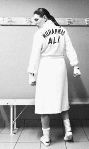 Une femme blanche porte le monologue intérieur imaginaire de Mohammed Ali en plein combat.