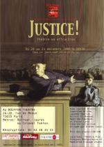 notre rapport à la "justice" : c'est le but que s'est fixé le collectif Les Boîtes à Cris en montant cette création. Ni réflexion intellectuelle, ni leçon de morale, c’est avant tout un pur moment de plaisir théâtral, oscillant entre le rire et le drame. Certains textes ont été volés à leur auteur puis détournés : Hugo, Robespierre, Shakespeare et d’autres écrivains de toutes sortes ont participé à la construction de ce spectacle cruel et drôle. Des extraits de théâtre, de romans, de lois et d’essais se mélangent et se répondent.Entre exaltations, utopies terrifiantes et scènes grotesques au tribunal, les comédiens démontent impitoyablement la Justice pour brouiller les convictions du spectateur et, peut-être, ébranler quelques préjugés.