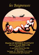 Les Baigneuses ont posé leurs cabines de bain sur la plage de Paris. De ces cabines sortiront tour à tour deux coquettes du Deauville des années 30 et les réincarnations délirantes de Coco Chanel et Sissi l'impératrice, pour vous servir une satire poétique et musicale du regard de la société sur la femme.Tout commence par la rencontre avec la pièce de Daniel Lemahieu les Baigneuses. Et plus précisément, avec le langage musical de ce texte. Une fois mis en bouche, il se place de façon évidente dans le corps dictant une sorte de chorégraphie théâtrale. On s'apparente alors à la forme festive du cabaret. Ensuite il y a l'envie de travailler sur la femme. L'image de la femme, comment elle se voit et comment elle est vue. Donc comment elle se transforme ou comment on la transforme pour s'intégrer. Et on retrouve cette problématique dans le texte de Daniel Lemahieu. Le spectacle présenté est donc un cabaret sur la femme à la mer. Nos baigneuses évoluent entre scènes parlées, nagées, dansées, chantées. Elles sont portées par deux comédiennes, et ne sont plus huit, comme dans le texte initial mais quatre : deux baigneuses universelles et les personnages de Coco et Sissi ; l'histoire de ces deux dernières étant le fil rouge du spectacle.