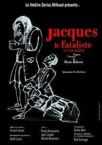 Jacques le fataliste est un récit enchâssé de plusieurs récits. Le conteur se place lui-même parmi les protagonistes. Plus encore ! De la scène, il interpelle les spectateurs et d'où parfois il est même cité par ses propres acteurs. Jeu subtil et intelligent entre le réel et l'imaginaire, on ne sait d'où viennent Jacques et son maître, pas plus où il se rendent, ni même pourquoi ils sont en route. C'est une des questions fondamentales de notre aimable condition. Mais là, pas de discours oisifs, pontifiants, non, du conte, du théâtre, de la sagacité nourris par la nature profonde des hommes. Nature où tout se dispute dans une gourmandise qui ne se dément à aucun moment."Voilà, explique Eric Herbette, adaptateur, ce qui a guidé mes pas pour proposer à la scène ce travail d'écriture que j'ai voulu gai, coquin, burlesque et surtout jouissif. J'en appelle de tous mes vux."