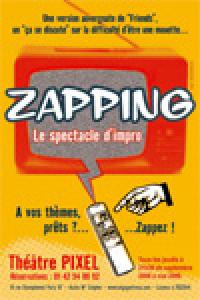 Pendant 1h30, un présentateur et quatre improvisateurs revisitent le petit écran et font vivre au public une soirée télé inattendue. De la parodie au délire, plus vrai que nature, Zapping boxe le P.A.F. Lorsqu’il entre dans la salle, le spectateur reçoit un bulletin sur lequel il inscrit un thème et où il doit cocher le genre de son thème : film, émission ou série. Tout au long du spectacle, le présentateur anime la soirée, passant de films en émissions et en séries. Il pioche un bulletin au hasard et propose au spectateur qui en est l’auteur trois choix différents.