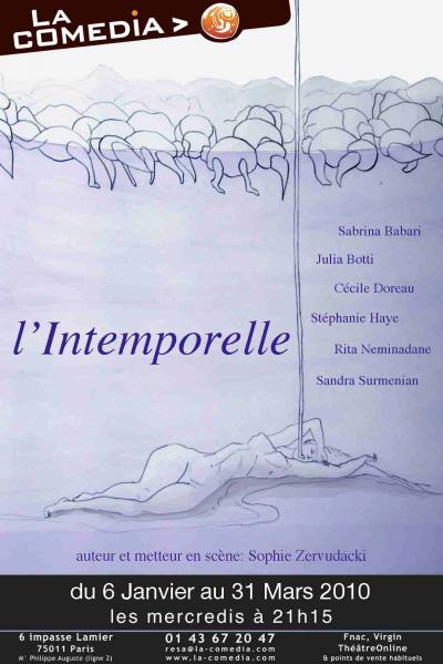 L’Intemporelle se divise en cinq facettes, interprétées par cinq femmes, qui la séparent maladivement d’elle-même. Chacune d’elle incarne une couleur ou névrose dominante dans le large panel d’émotions qui peut habiter une femme au cours des étapes de sa vie.