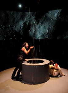 Deux hommes, Canne et Chapeau, s’agitent autour d’un puits dans lequel se trouve un chien. Bien qu’ils semblent vouloir sauver l’animal, ils ne tentent rien pour y parvenir. Parfois, pour se donner bonne conscience, ils lui jettent quelques morceaux de pain. Mais la nuit commence à tomber et le chien est toujours prisonnier. Pour mettre en valeur le texte de Matéï Visniec, Nino D’Introna fait le choix d’un dispositif scénique très simple, très concentré. Ainsi, face à une mise en scène sobre et à deux excellents comédiens qui le prennent à plusieurs reprises à parti, le spectateur est-il véritablement plongé dans la pièce. Les gradins qui encerclent le plateau de jeu lui donnent l’impression d’assister à une joute (verbale) entre deux clowns cruels, plus préoccupés d’eux-mêmes que du drame qui se noue. Incapables d’assumer leur lâcheté, ces héros machiavéliques autant que pathétiques, déversent leur haine sur leurs semblables pour tenter de faire taire leurs angoisses existentielles.Le dialogue souvent piquant peut être entendu à plusieurs niveaux. Les enfants, dès 9 ans, sont conviés à y assister et y verront une sorte de conte aux héros poltrons et ridicules. Les adultes iront plus loin dans la lecture de cette pièce et décrypteront son aspect philosophique, les interrogations qu’elle lance sur la responsabilité et, plus généralement, sur les comportements humains. Mais tous, petits et grands, se retrouveront dans un même émerveillement face à la beauté des lumières et des quelques effets "magiques" ménagés sur le plateau.