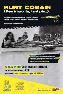 Kurt Cobain, leader emblématique du groupe Nirvana est devenu en cinq années fulgurantes, un symbole de toute une génération. Pour un jeune homme mal dans sa peau venu d’une bourgade du nord de Washington, cela fait un peu beaucoup. Sa mort, annoncée le 8 avril 1994, reste un mystère. Suicide, meurtre ? Quoi qu’il en soit, sa vie, son uvre et son départ ont fait de Kurt Cobain une légende. Un artiste de talent, membre du bien triste "Club des 27".Nirvana, tout le monde connait. Tant par le son du groupe, Smells like teen spirit fait partie des titres qui ont marqué l’histoire de la musique ; que par son style révolté et contestataire ; par le look grunge des membres du groupe et surtout par la personnalité fragile, troublée et le génie de son leader Kurt Cobain. Frédéric Jessua n’a pas manqué d’être lui aussi touché, comme bon nombre de personnes nées dans les années 80, par l’arrivée de cet ovni sur la scène musicale et par ce qu’il remettait en cause. Une prophétie. Kurt (visionnaire ?) annonçait un futur triste et soumis à l’industrie, à l’argent et contrôlé par les médias. Un avenir où les gens seraient renfermés sur eux mêmes avec la peur de l’autre leur tenaillant le ventre, à l’abri derrière leurs écrans. Waouh !!!Très délicat de réaliser un spectacle oscillant entre théâtre et concert sur le symbole écorché de toute une génération plutôt flippée. Frédéric Jessua et son équipe s’en sortent bien. Cette création ne se veut pas une simple représentation de la vie de Kurt, mais plutôt une réflexion sur l’homme, son uvre et surtout son message. Comment peut-on encore continuer à foncer tête baissée droit dans le mur, alors que de nombreux artistes mondialement connus et reconnus n’ont eu de cesse de sonner l’alarme ?! Des artistes entendus, mais pas écoutés.Une grande partie du texte de Kurt Cobain (Peu importe, tant pis...) est tirée du journal intime de Kurt. Mélangé à la performance des comédiens dans un jeu d’acteur qui se veut résolument vrai, essentiel et direct, les mots résonnent. Ils sont forts et touchants, respectueux de leur auteur et de son état d’esprit. Ni plaintifs ou complaisants. L’équipe n’est pas là non plus pour encenser Cobain ; simplement avec honnêteté et amour pour l’homme et l’artiste, elle retransmet ses mots.Bien sûr, les titres phares du groupe sont repris eux aussi. Quel bonheur ! Il aurait été ridicule de vouloir imiter en tentant de faire du Nirvana. Quand quelque chose est bon, impossible de le copier. Tous les morceaux sont repris et adaptés à la manière des artistes sur scène. Pour reprendre les mots de Frédéric Jessua, "la perception de chaque morceau est poussée à son paroxysme" Fantastique. Cette belle équipe nous offre un défilé d’instruments (violon, violoncelle, accordéon, guitare, piano, vibraphone, percussions...) ainsi qu’un éventail de genres musicaux. Les titres sont repris a cappella, version acoustique, rock, voire techno, chorale... et j’en passe. Loin d’être un plagiat ou de vulgaires reprises grotesques, c’est avec joie que l’on redécouvre ces morceaux qui, pour beaucoup d’entre nous, ont bercé notre enfance, dans des sonorités nouvelles. C’est intelligent, intéressant et authentique.La mise en scène est une sorte de "joyeux bordel". L’ouverture se fait quand même sur le jet de vomi sur scène d’une des comédiennes. Le ton est donné, ce sera grunge et véritable ! On ne va pas faire dans la dentelle. Et pourtant, on y trouve beaucoup d’humour, des moments touchants et d’autres qui donnent des frissons. Sur scène, une télé allumée, un canapé défoncé, des maillots de hockey, des chemises et des robes suspendus, des instruments de musique... Le tout en mouvement, évoluant au fil de l’histoire et des différents tableaux de la vie de Kurt. Les changements sont fluides, l’énergie continue, les différentes étapes se mêlent car, comme dans la vie, tout est lié. Ce rythme et cette simplicité sont agréables, on suit les comédiens sans à-coups et tout fait sens.Les comédiens, résolument tous également musiciens, aiment Nirvana. Cet amour et l’engagement que tous ont mis dans cette création se ressent. Ils prennent plaisir à raconter et vivre cette histoire si intense et particulière. Choix très intéressant, c’est Marie Nicolle qui interprète en priorité le personnage de Kurt. Tous les comédiens, plus ou moins, entrent dans la peau de Cobain, Krist Novoselic, Chad Channing, Courtney Love, et d’autres encore ; mais c’est une femme qui marque le plus la présence du leader sur scène. Choix et contraste judicieux. Ainsi, là où un comédien aurait pu être tenté de faire une pâle imitation, Marie joue à sa manière avec sa résonance, son être et son physique. Alors, il est vrai qu’il est impossible de transmettre toute l’intensité et la souffrance d’une personne si l’on n’a pas traversé les mêmes épreuves, d’autant plus lorsque la personne que l’on interprète est un génie devenu l’icône de toute une génération, et tout particulièrement si cette dernière est toxicomane. Certes, Marie n’a pas le vécu de Cobain, mais son monologue sur l’enfer du sevrage de l’addiction à l’héroïne est réussi, et son jeu tout au long de la pièce est sincère et engagé.Pour ne pas avoir uniquement le point de vue de Mr Kurt Cobain, certains passages sont extraits de l’ouvrage Nirvana, La Véritable Histoire d’Everett True. Une autre vision pour plus d’authenticité et de recherche de la "vérité" dans cette retransmission pleine d’amour qu’est l’histoire de Kurt Cobain.Un spectacle touchant par sa forme, ses propos et sa réflexion. A n’en pas douter, Kurt Cobain (Peu importe, tant pis...) gagnera en force et en intensité avec le temps et l’expérience. Egalement un bel hommage au génie du grunge devenu un 