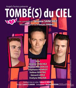 Ceci n'est pas un spectacle comique comme on en rencontre souvent à Paris... Ceci n'est pas non plus une comédie romantique dans la grande lignée de Coup de foudre à Notting Hill. Ceci est un OVNI de la scène théâtrale française dans sa forme et dans son fond de gorge. Tombés du ciel est une sorte de sitcom sous LSD, avec des personnages tout à tour fantasques et dépressifs. C'est Hélène et les garçons suicidaires, Le miel et les abeilles du sexe, Derniers baisés... On retrouve une sorte de parodie invraisemblable de ces niaiseries cathodiques, avec un zeste de paranormal pour sublimer le tout.Pour le petit résumé, un jeune veuf pleure son concubin mais se retrouve dans les bras d'un garçon coquin et provocateur, pour le plus grand bonheur de sa mère, envahissante et lubrique. Almodovar n'a plus qu'à se rhabiller car Jérôme Sanchez ne recule devant rien en matière de grivoiseries teintées d'intersexualité, de questionnements identitaires, d'angoisses et de solitudes urbaines. On ressort de Tombés du ciel comme d'un champ de bataille.La mise en scène de François Rimbau ne nous laisse pas un temps de répit dans cette avalanche de clichés détournés, vidés, essorés, et pour tout dire travestis, pour la délectation des oreilles.