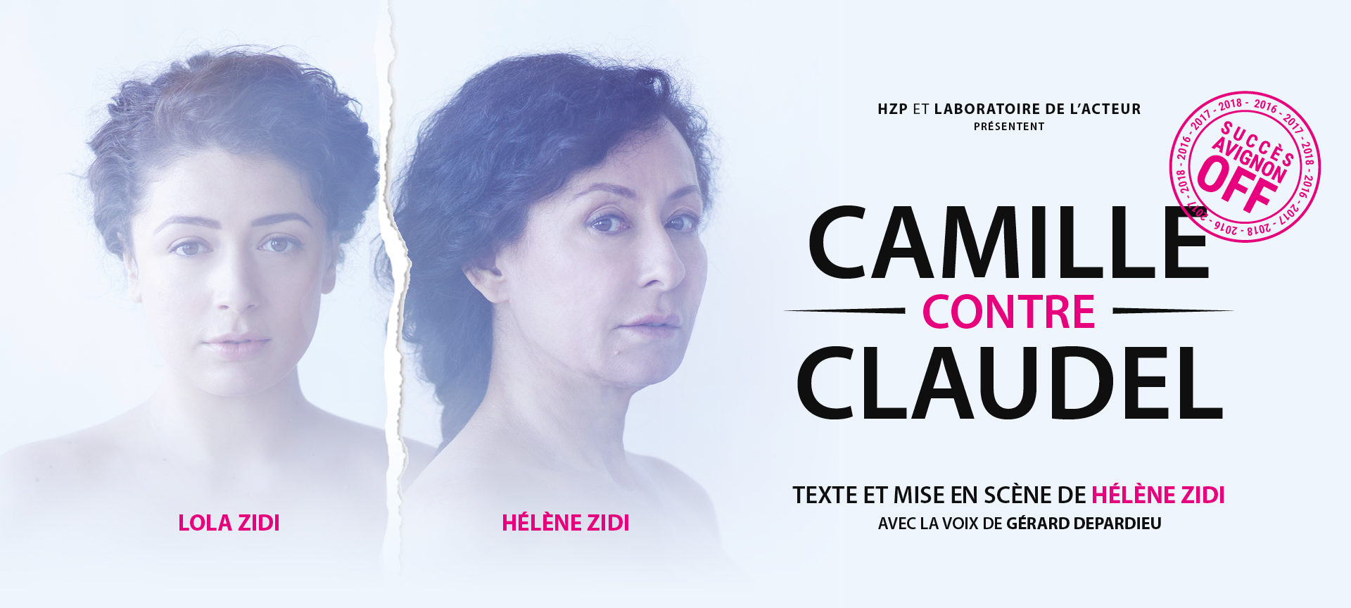 Quand la pièce commence, le spectateur est confronté à une femme cloîtrée, petite vieille chapeautée vue au travers de barreaux. Il comprend très vite qu’il a affaire à la Camille de l’asile de Montdevergues. Là, où elle mourra, en 1943, de malnutrition. En ses paroles, à la fois supplication et amertume, se dégage un profond désespoir. Celui-ci d’être coupée de sa famille, particulièrement de ce frère qu’elle a aimé plus que nous. L’a-t-il abandonné ? La question reste en suspens. Le vert paradis qui remonte en elle, c’est celui d’avant la mort de son père, le 2 mars 1913, et de son internement à Ville-Evrard, huit jours plus tard. Cette jeunesse, ici, a la fraîcheur de Lola Zidi, la fille-même d’Hélène Zidi. Ainsi fille et mère s’affrontent dans le dédoublement du personnage, dialogue déchirant qui a pour cadre l’atelier du Quai Bourbon, reconstitué sur scène. A un moment, l’éclairage se braque sur le buste de Rodin, plus faunesque que jamais. Et toute la passion éclate, la fascination absolue pour le maître, la fusion des corps aboutissant peut-être à plusieurs naissances, à des avortements, enfin la haine née de la rivalité, provoquant chez Camille l’effondrement. Si Rodin est absent en chair et en os, sa voix surgit du chaos. Et c’est celle de Gérard Depardieu, comme dan le film de Bruno Nuytten.