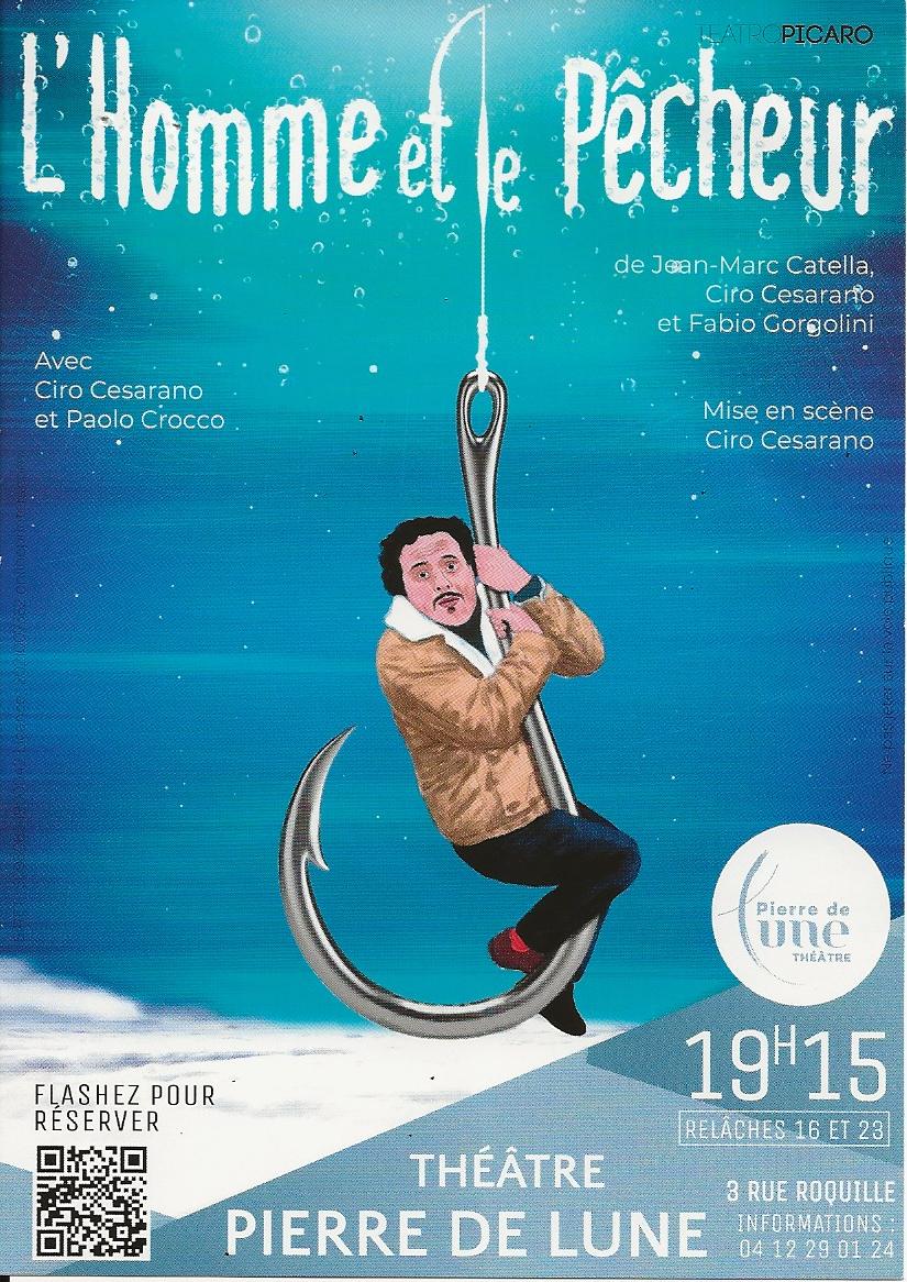 L'histoire est simple, un fronton, un pêcheur (un peu bizarre) et un homme qui arrive une corde autour du cou et une grosse pierre accrochée au bout de la corde, oui il veut se suicider, et il essaie d'entamer la conversation avec ce pêcheur habillé en costume noir et petite lunette noir, pas engageant.