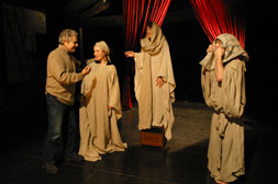 Cette chapelle-là n'est pas un lieu commun : il s'y dégage une atmosphère différente. Est-ce dû à ces voûtes centenaires, ces fresques murales ou cette sympathique cour intérieure dans laquelle la compagnie reçoit le public autour d'un verre ? Une chose est sûre : la compagnie arlésienne du théâtre de la Calade ne s'y est pas installée par hasard, durant ce festival d'Avignon. C'est en effet dans ce sanctuaire chargé d'histoire, à deux pas de la place Pie, que la troupe créée en 1978 par Henry Moati, raconte… l'histoire du théâtre ! Et bien plus encore puisque la préhistoire est également abordée. Du théâtre grec avec Aristophane ou Sophocle, au Moyen Âge jusqu'à l'époque contemporaine, la Calade nous transporte dans le temps : on retrouve avec délice Shakespeare dont Richard III ("Mon royaume pour un cheval") ou Hamlet avec le fameux "to be ou not to be", la commedia dell'arte, Molière, Marivaux, Rostand et Brecht, ceux qui ont écrit et décrit les travers des hommes.Pour lier le tout, Henry Moati met en scène quatre comédiens de deux générations différentes, dans les coulisses du centre dramatique de la Rue Blanche, à Paris. C'est d'ailleurs dans cette école - délocalisée aujourd'hui à Lyon - que le directeur de la troupe, également comédien dans cette création, a étudié l'art théâtral. Trois musiciens au saxo, à la trompette et au tuba, les accompagnent dans ce voyage à travers les siècles. En découvrant la scène et les coulisses - tous les changements se font à vue - le public se retrouve spectateur et témoin à la fois. Il partage les souvenirs de Sacha Bernard qui, après avoir joué Falstaff avec sa troupe, rencontre un curieux personnage envoyé par le "Patron", son ange-gardien, sa conscience... Pour tous ceux qui aiment le théâtre, ce spectacle à caractère pédagogique est à ne pas rater.